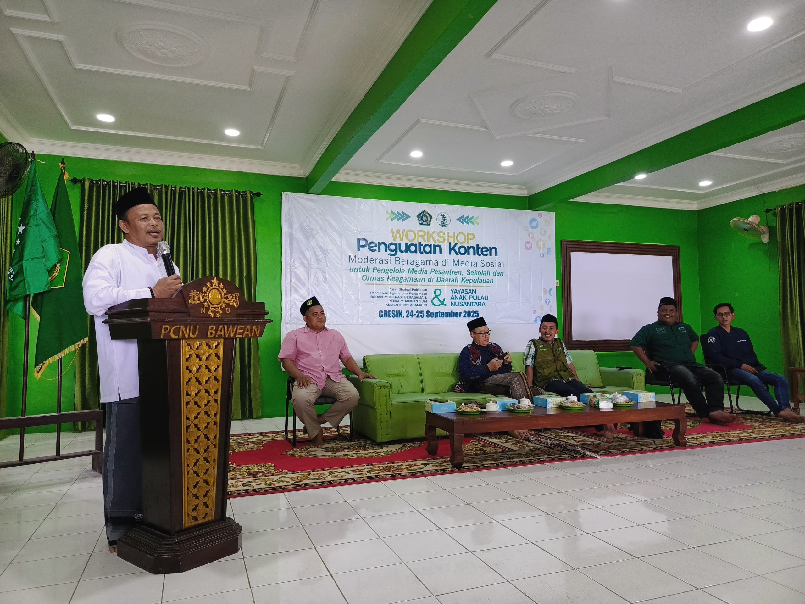 Yayasan Anak Pulau yang bekerjasama dengan kementerian agama Republik Indonesia menggelar workshop penguatan konten moderasi beragama di media sosial. Peserta yang terdiri dari dilegalisi pesantren, sekolah dan Banom Nahdlatul Ulama diharapkan mampu mengelola dan memanfaatkan media sebagai penyebaran dakwah. Kegiatan ini bertempat di Aula Gedung PCNU Bawean, Kabupaten Gresik, (Selasa 17/02/2026).